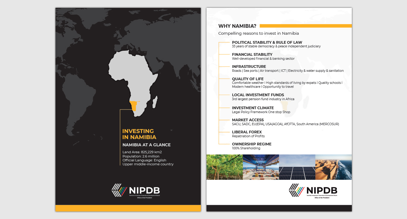 The Namibian Investment, Promotion, & Development Board is a programme spearheaded by Former Namibian President, Hage Geingob to facilitate and develop goals for Vision 2030.